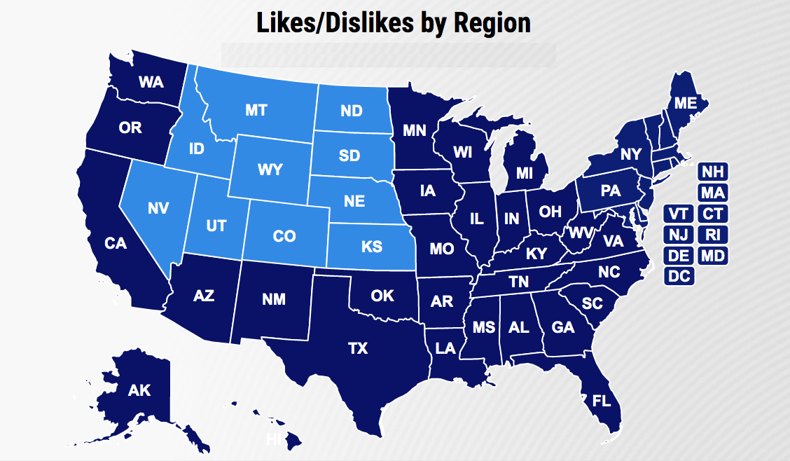 At the end of the day, Episodes IV through VIII remain the most beloved throughout the United States, with the outstanding exception of Rogue One. Less beloved is the prequel series, which may still need a little time to gain more cross-country appreciation.